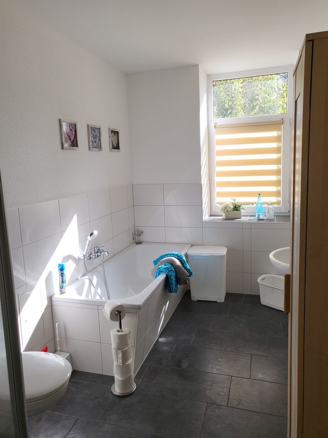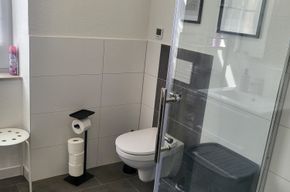Dusche, Badewanne, WC, Handtücher, Seife, Föhn