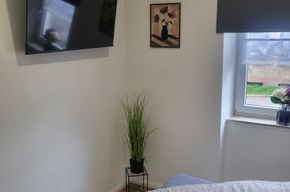 1 Doppelbett (1,40 m), TV, Kleiderschrank, Kommode